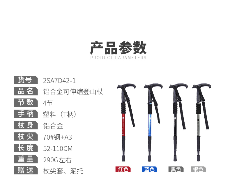 骆驼(Camel)登山杖 4节T柄伸缩 2SA7D42-1