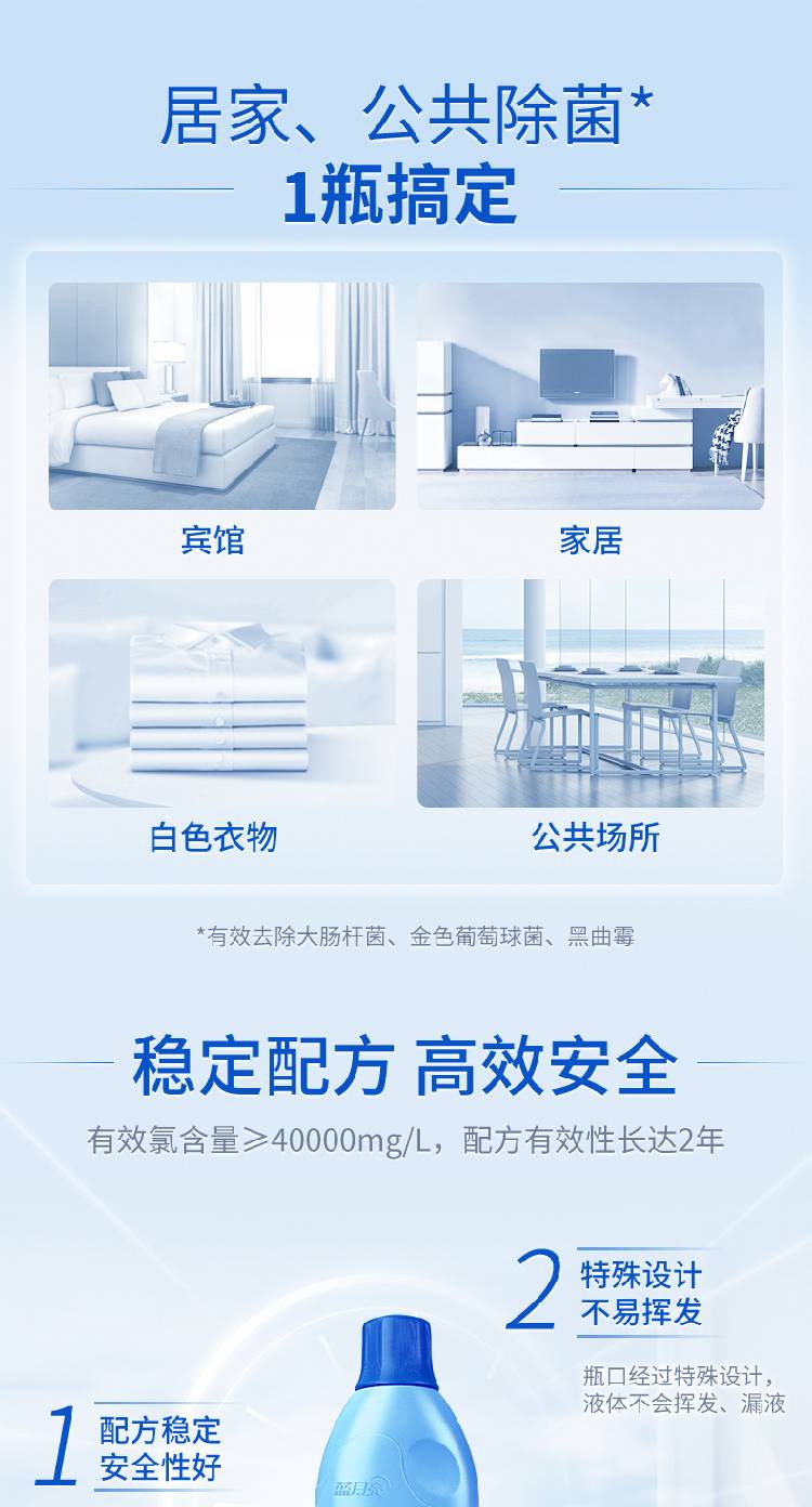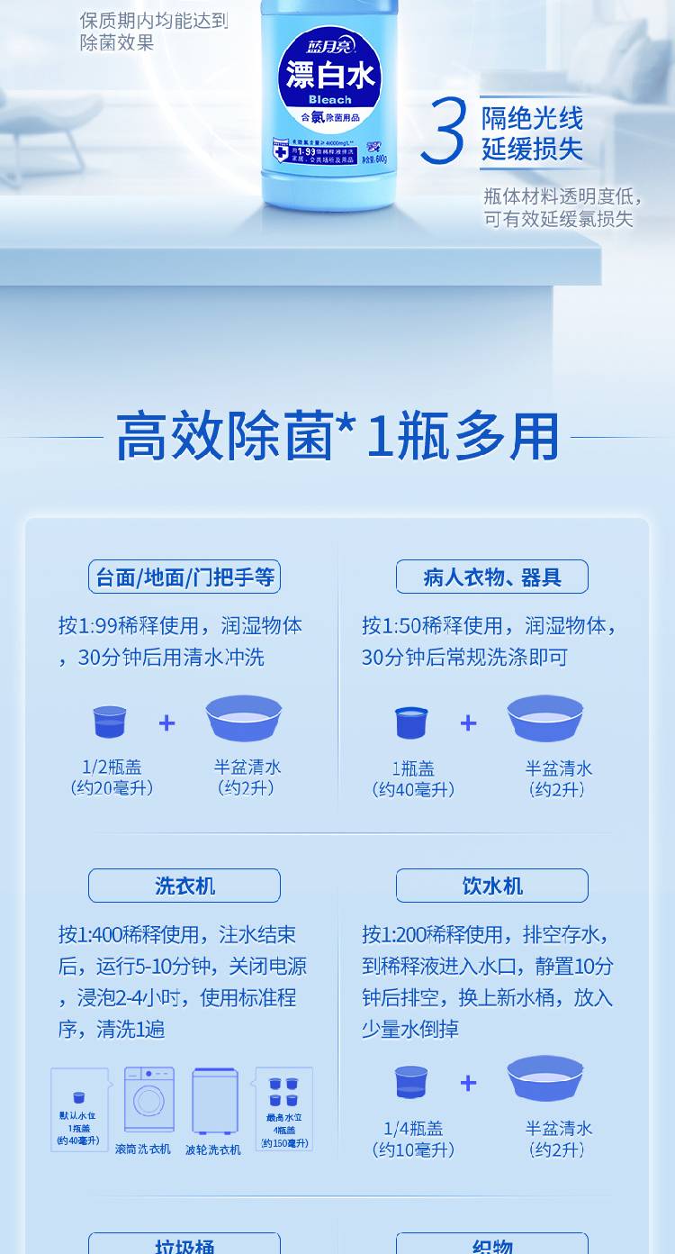 首页 >> 蓝月亮 漂白水洗衣液 去黄去污增白液 消毒漂白剂 600g*4瓶