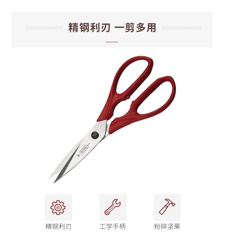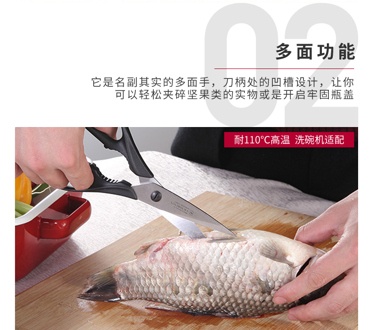 首页 >> 维氏(VICTORINOX)瑞士军刀 德国制造不锈钢家用厨具多用剪刀居家多功能剪刀剪鱼鸡鸭剪刀 7.6363