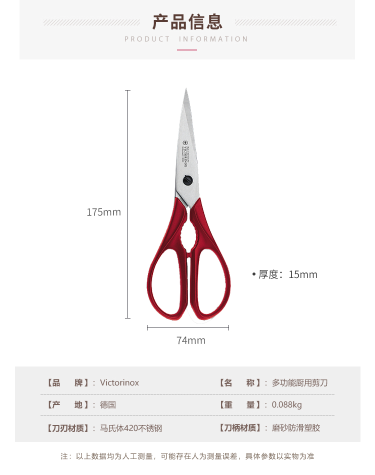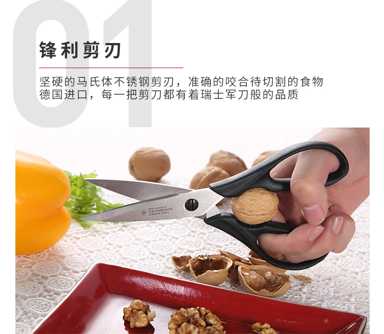 维氏(VICTORINOX)瑞士军刀 德国制造不锈钢家用厨具多用剪刀居家多功能剪刀剪鱼鸡鸭剪刀 7.6363