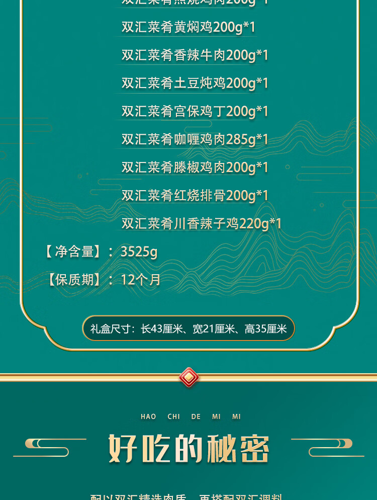 首页 >> 双汇 熟食礼盒中华菜肴C款尊宴3525g