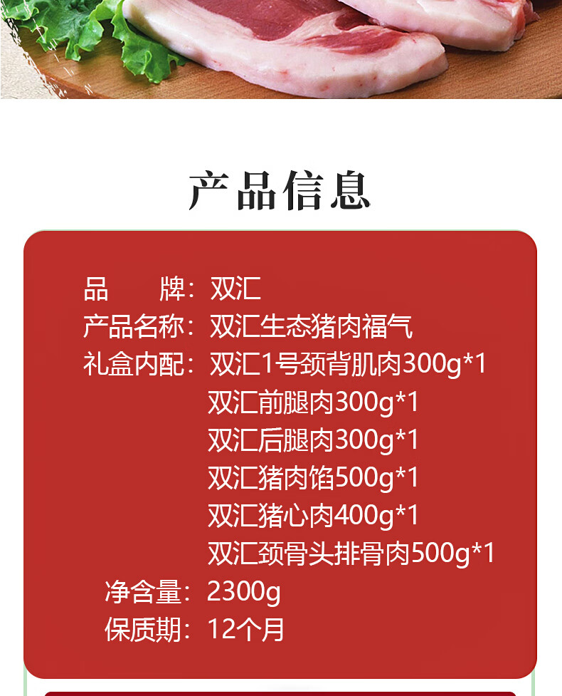 首页 >> 双汇 肉类土猪肉礼盒 双汇生态猪肉福气2300g